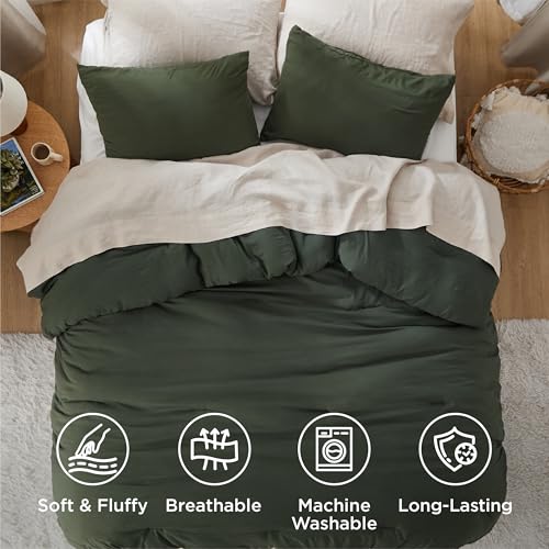 Bedsure Full Size Comforter Set, Dark Green Soft Prewashed Bedding for All Seasons, 3 Pieces GentleSoft™ Warm Down Alternative Bed Set, 1 Lightweight Comforter (82″x86″) and 2 Pillowcases (20″x26″)