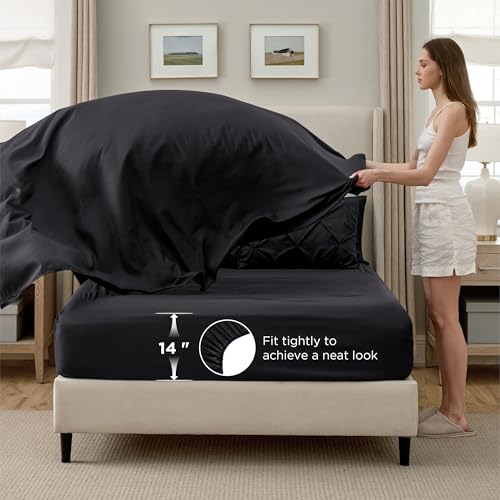 Specification: Bedsure Queen Comforter Set Black – Bed in a Bag Queen Size Bedding 7 Pieces, GentleSoft™ Pintuck Bed Set Gift for Family, Pinch Pleat All Season Comforter with Sheets, Pillowcases & Shams