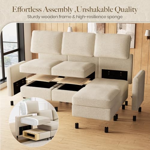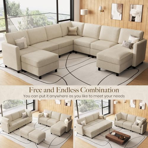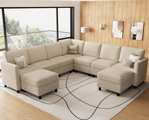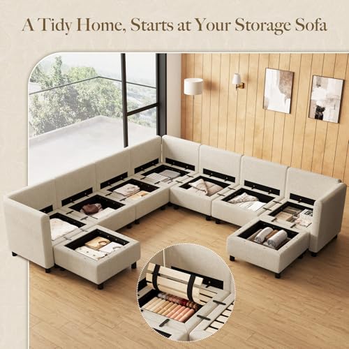 Belffin 107.1″ 9 Seats Modular Sectional Sofa U Shaped Couch Big Corner Washable Sectional Couches for Living Room Comfy Couches with Storage Deep Seat Couch Sofas with Chaise,Beige