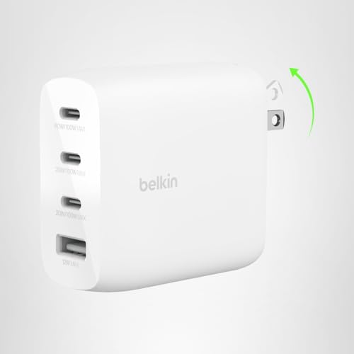 Whether you’re at home or on the go, keep your devices charged with the Belkin BoostCharge Pro 4-Port GaN Wall Charger 112W. This versatile wall charger’s GaN chipset delivers high-power for an efficient charge to compatible devices. It’s packed with the latest USB-C Power Delivery and PPS technologies, working together to safely deliver the ideal amount of fast power to the device it’s connected to. And with foldable pins, you can easily pack it to charge your MacBook Pro, iPhone 17, Galaxy S25, and more on the go.