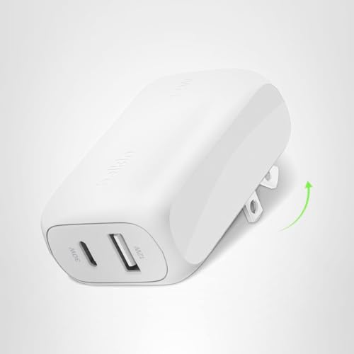 Belkin 42W Dual Port Charger Block, USB-C + USB-A Charger Super Fast Charging – Samsung Galaxy S25, Apple iPhone 17, Air, Pro, Pro Max, iPad, AirPods, Apple Watch, Nintendo Switch 2 & More – White