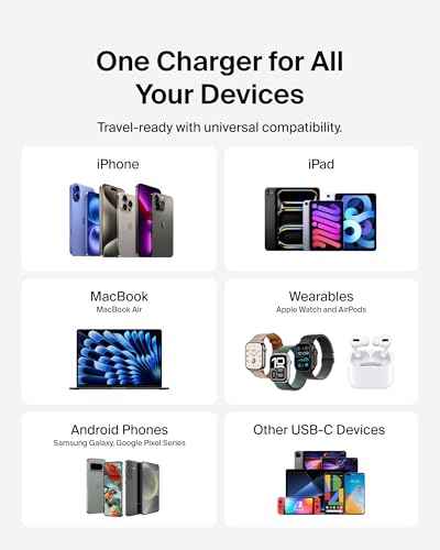 FAST CHARGING TECHNOLOGY: This 42W USB-C wall charger lets you fast charge an Apple iPhone 16 or Samsung Galaxy S25 from 0-50% in just 24 minutes, allowing you to spend less time charging and more time carrying out the tasks of your day.