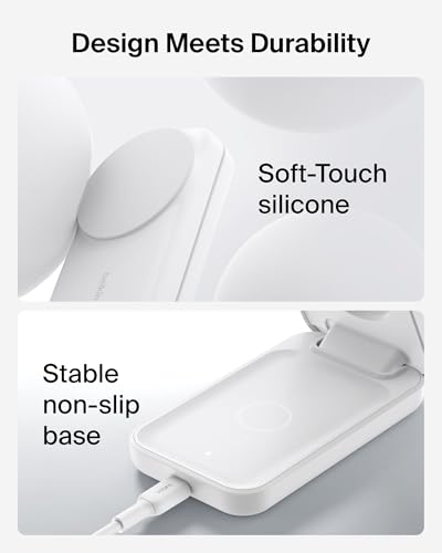 Specification: Belkin MagSafe Charger Compatible, 3-in-1 Charging Station, Qi2.2 25W Magnetic Wireless Charger Dock, Foldable Charging Stand for iPhone 17/16/15, Apple Watch, AirPods, Pixel 10 (45W Adapter Included)