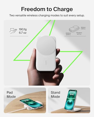 FAST CHARGE W/ THE LATEST Qi2 TECHNOLOGY: Conveniently fast charge your iPhone or Qi2 devices up to 25W on the magnetic charger. Fast charging is supported only on iOS 26 and newer, not iOS 18. MagSafe compatible for up to 5x faster wireless charging.*