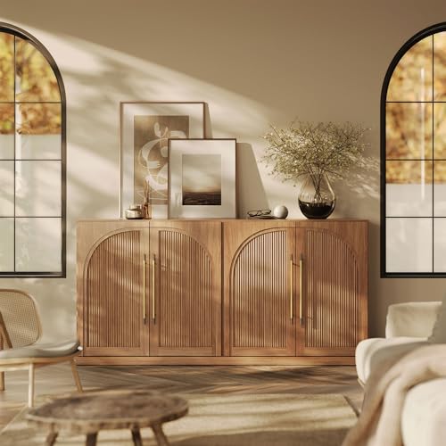 Specification: BELLEZE 65 Inch Sideboard Cabinet with Double-Arc Wood Doors, Large Buffet Cabinet with Storage and Adjustable Shelves, Classic Modern Console Table for Dining Room Living Room Entryway (Camel)