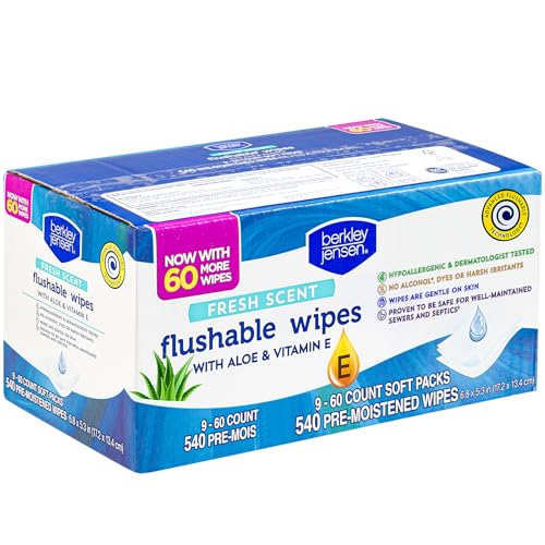 Frangrance-free and hypoallergenic, Berkley Jensen Flushable Cleansing Wipes with Aloe and Vitamin E provide gentle personal cleansing care and freshness when you need it. These soft, flushable wipes offer a more complete clean than regular bath tissue alone and, becuase they are free of alcohol, dyes or harsh irritants, they are gentle enough for babies, too.
