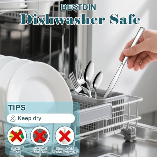 Bestdin 60 PCS Silverware Sets – Mirror Polished Flatware Set for 6, Including Knives, Spoons and Forks, Cutlery Set, Dishwasher Safe & Stainless Steel Silverware for Wedding Gift, Home & Party Use