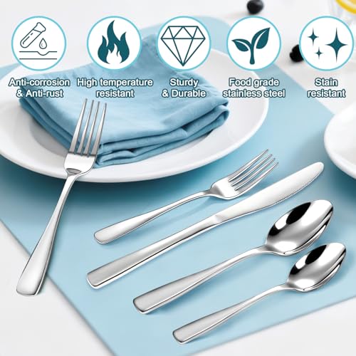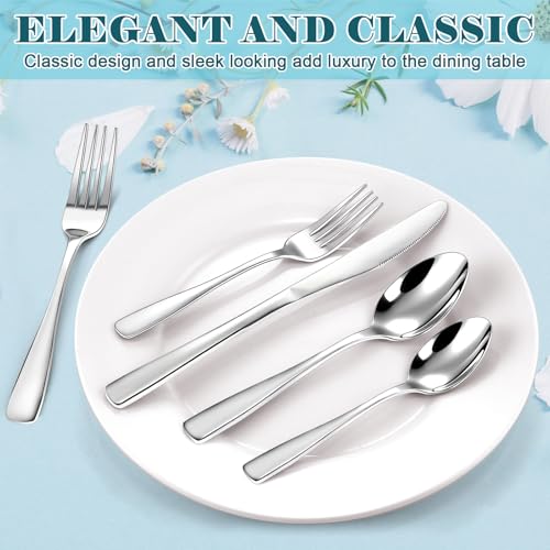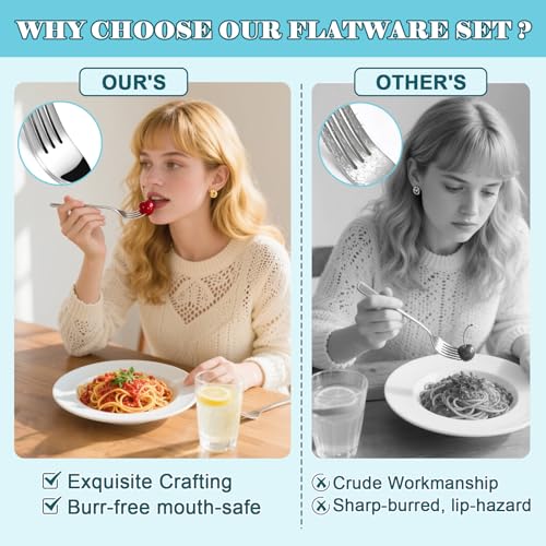 【Elegant Mirror-Polished Finish】Multiple layers of meticulous polishing give this silverware a long-lasting mirror shine. This silverware set keeps its luster after repeated dishwasher use (no re-polishing needed), saving you time and hassle. Plus, it has smooth, rounded edges for safety across all ages. Its timeless, elegant design effortlessly complements any table setting, making it an ideal choice for formal occasions like housewarming celebrations, or as a thoughtful Mother’s Day gift