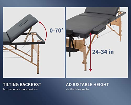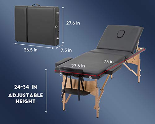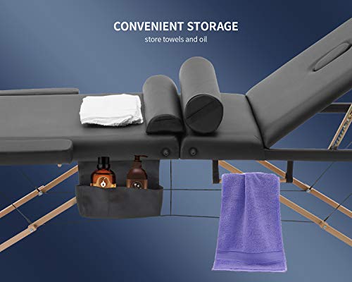 BestMassage Massage Bed Portable Massage Table 28 inch Wide Lash Bed Height Adjustable 3 Folding Spa Table with Towel Hanger Oil Pouch Half Bolster Round Bolster Non-Woven Backpack