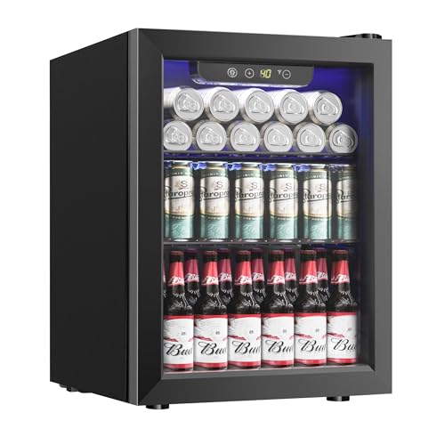 Specification: Beverage Refrigerator Cooler, 16 Bottle 68 Can Mini Fridge with Glass Door, Wine Beer Freestanding Drink Fridge, Digital Temperature Control & Adjustable Shelves for Home Office, 1.7 cu.ft