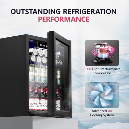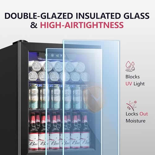 【Precision Digital Control for Ideal Chill】 Keep drinks in mini refrigerator crisp and refreshing with easy-to-use digital temperature control (40°F–61°F) . The double-pane glass of small fridge features airtight seals and Low-E insulation to block heat transfer while preventing condensation—ensuring temperature accuracy with energy savings.