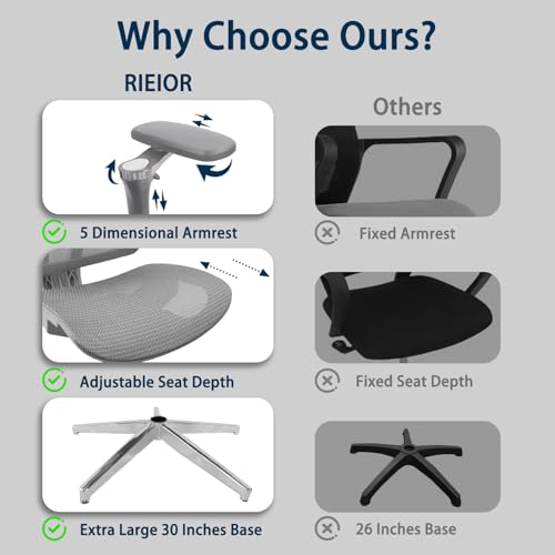 【Built to Last & Hassle-Free Warranty】 Certified by CE, GCC, SGS, and BIFMA for quality and safety. The aircraft-grade glass fiber nylon frame and reinforced mesh guarantee long-term durability and easy maintenance. Every RIEIOR chair includes a full2-year warrantycovering parts and defects, with a24-hour weekday responsefrom our dedicated support team.