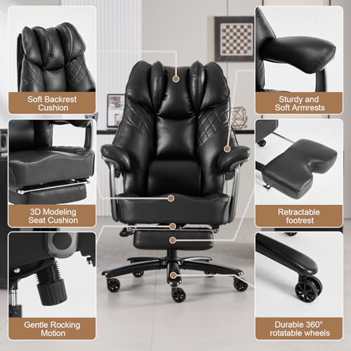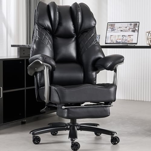 Big and Tall Office Chair 400lbs for Heavy People, Wide Executive Office Chair with Foot Rest, High Back Ergonomic Desk Chairs Lumbar Support for Lower Back Pain, Leather Black