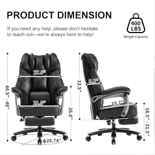 Specification: Big and Tall Office Chair 400lbs for Heavy People, Wide Executive Office Chair with Foot Rest, High Back Ergonomic Desk Chairs Lumbar Support for Lower Back Pain, Leather Black