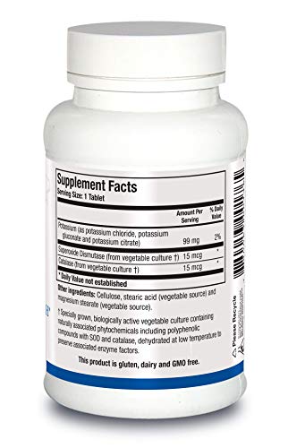 Specification: Biotics Research K Zyme™ Potassium, 99 milligrams, Supports Cardiovascular Function, Electrolyte Balance, Nerve Transmission, Muscle Activity, Superoxide Dismutase, Catalase.100 Tablets