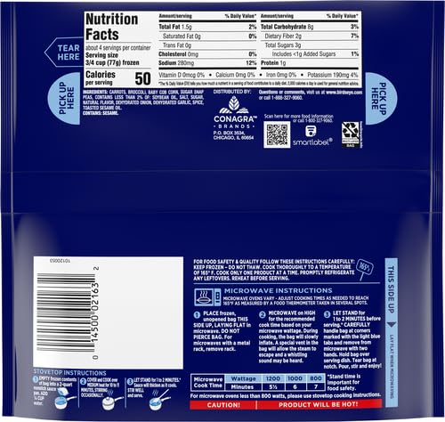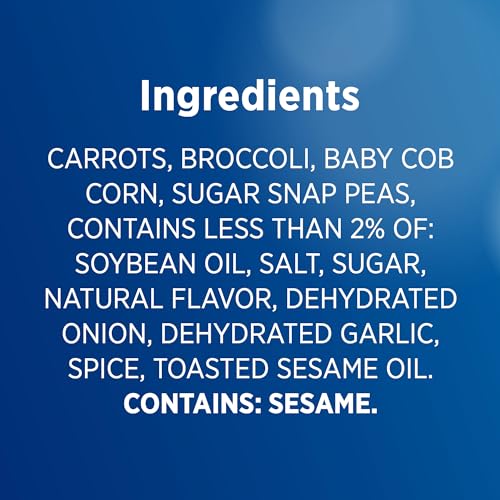Enjoy savory vegetables without the hassle when you have Birds Eye Steamfresh Asian Vegetable Medley. Broccoli, carrots, baby corn and sugar snap peas make it easy for everyone to love their vegetables. These frozen stir fry vegetables were specially selected and flash frozen, locking in fresh flavor and nutrients, to provide you and your family with high-quality frozen vegetables. This Birds Eye frozen mixed veggies side is made with no artificial flavors, colors or preservatives for a delicious and convenient way to enjoy vegetable dishes and frozen sides without compromise. Serve the steamed vegetables as a side dish along with your favorite grilled meat, or add them to grain bowls, pasta dishes and salads as part of a main dish. Easily prepare the frozen vegetable mix side dishes by microwaving them in the bag for up to 7 minutes or by cooking on the stovetop for 10 to 11 minutes. Let stand for 1 to 2 minutes before serving. Store this 10.8 ounce bag of steamable mixed vegetables in the freezer to maintain freshness until you are ready to enjoy. It’s good to eat vegetables, so Birds Eye makes vegetables good to eat.