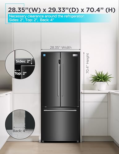 Specification: BLACK+DECKER 16 Cu. Ft. French Door Refrigerator with Built-in Ice Maker, Full Size Refrigerator with Bottom Mount Freezer Drawer, Frost Free, ENERGY STAR certified, BRF1600GIMB, Black