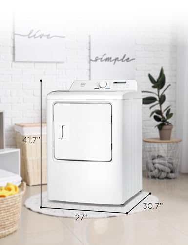 Specification: BLACK+DECKER 7.0 Cu. Ft. Front Load Dryer, Clothes Dryer with LED Display and Dial Control, 5 Senor and Manual Dry Selections, Wrinkle Care, 240V, BLD67ME, White