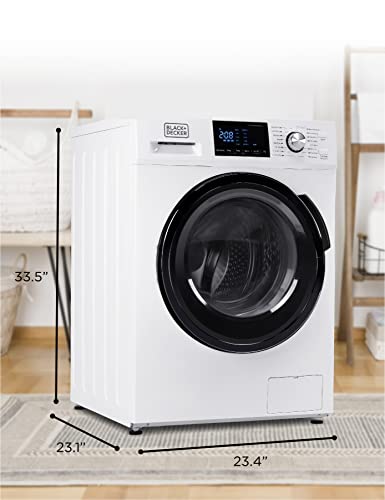 Launder your clothes and dry them with a peace of mind thanks to this BLACK+DECKER washer and dryer combo set. With 16 wash cycles to choose from—including Permanent Press, Sportswear and even Quick Wash, just to name a few—you are sure to find the right option for all your needs. This washer dryer(23.4” x 23.1” x 33.5”) has a RPM Max Spin Speed of 1300, auto unbalance detection, a stainless steel wash tub and transparent front loading lid for your convenience. Our ventless dryer has Timed Dry and Auto Dry with Normal, Delicate and Extra Dry options. With an interior capacity of 2.7 cubic feet, Child Lock and Door Lock safety highlights as well as an easy-to-read LED control panel, using your new washer dryer combo (160.9 lbs.) is easy and a real delight. Installation is seamless, as this unit requires a 120V not 220V and can be installed in any room in your apartment or home. That’s right—no outside exhaust pipe! 1-year limited warranty on labor and parts. ISTA-6A packaging ensures the product will be delivered safely to you.
