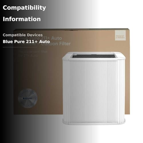 COMPATIBLE WITH BLUE PURE 211+ AUTO: Blueair Combination Particle + Carbon Replacement Filter compatible with Blue Pure 211+ Auto air purifiers; not compatible with Blue Pure 211+ air purifier (non-auto)