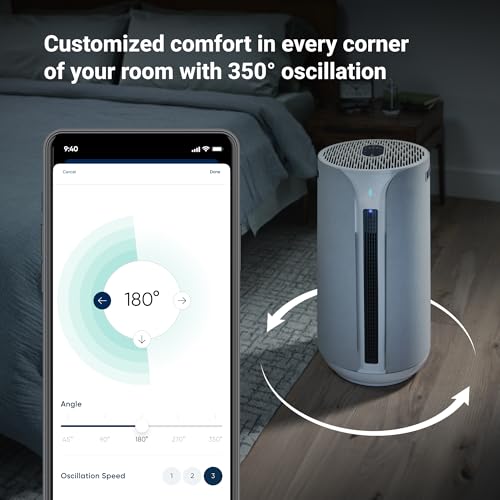 PERFECT WARMTH: Quickly warm your room up to 100°F with our PTC heating technology, which reaches stable warmth in just 60 seconds. Tackle cold spots effortlessly by setting the purified warm air to a consistent stream or adjusting the angle with oscillation options up to 350 degrees.