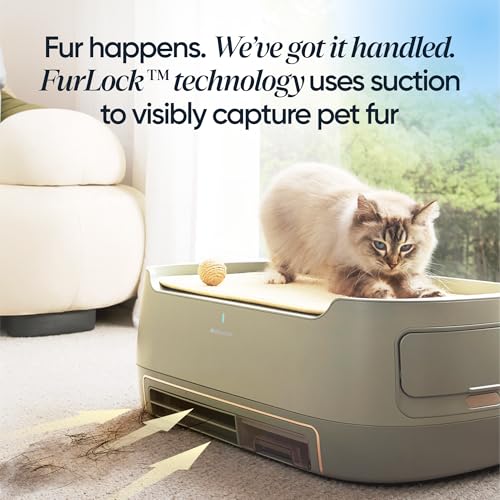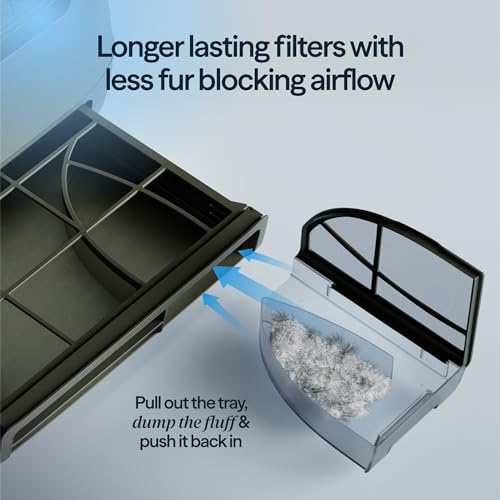 “Meet the air purifier designed for pets and the people who love them. The Blueair PetAir™ combines advanced air cleaning with thoughtful pet-friendly design, creating a healthier, fresher home where pets and families thrive together. FurLock™ Technology uses built-in vacuum suction to pull in pet hair tumbleweeds that roll across floors, helping reduce allergens and daily cleanup. Say goodbye to constant sweeping and discover a cleaner living space—even with multiple pets. OdorFence™ Technology tackles one of the biggest challenges of pet ownership: odors. This powerful barrier neutralizes smells from litter boxes, wet dogs, and everyday pet life, keeping your home smelling clean and inviting. Equipped with H13 True HEPA and 5-Stage Filtration, PetAir™ captures 99.97% of airborne particles like pet dander, fur, dust, pollen, mold, and smoke. Whether you’re managing allergies, asthma, or just want a fresher home, PetAir™ delivers reliable, medical-grade purification. Smart design makes it effortless. Auto Mode uses sensors to monitor air quality in real time, automatically adjusting fan speeds for maximum efficiency. Pet Mode increases airflow when it’s needed most—like after playtime, shedding season, or litter changes. Pet comfort is at the heart of PetAir™. The integrated washable pet bed creates a cozy spot for your furry friend to rest right where the cleanest air flows. Soft, practical, and designed with pets in mind, it’s a space they’ll love as much as you do. With coverage up to 1,300 sq ft, this purifier is powerful enough for large rooms, yet whisper-quiet for peaceful nights. Ideal for bedrooms, living rooms, or any space shared with your pets. The Blueair PetAir™ isn’t just another air purifier—it’s a commitment to cleaner air, happier pets, and a fresher home.”