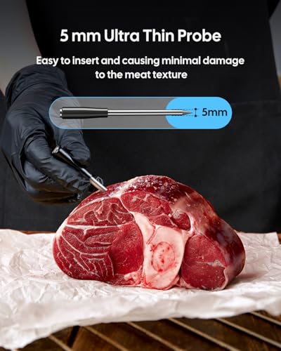 Ultra-Thin 5mm Bluetooth Wireless Meat Thermometer Probe – Minimizes meat damage while penetrating deep for core-temperature accuracy.
