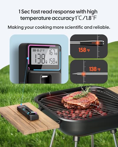 Precision Cooking, Perfect Results – The bluetooth meat thermometer for smoker can measures temps instantly (1-second response) with ±1.8°F accuracy, ensuring juicy, restaurant-quality meat every time.
