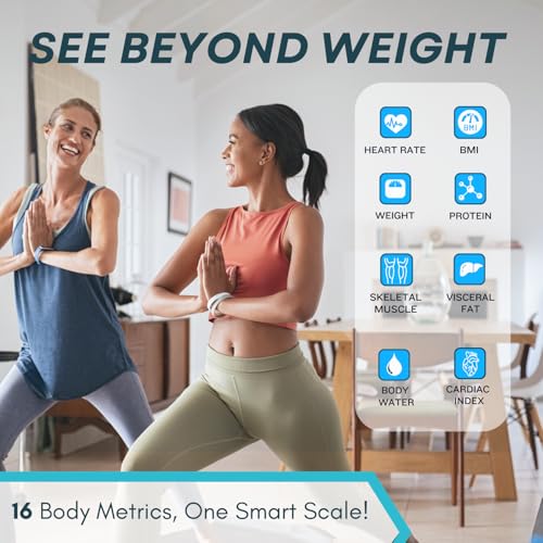 Extensive Body Metrics Analysis: Stay on top of your fitness with 16 different body composition metrics including body fat percentage, muscle mass, bone mass, and visceral fat, as our body composition scale casts your body’s complete health picture