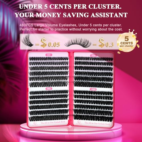 Specification: Bombshell X Volunm Lash Clusters Kit Thick Mink 80D-200D Lash Extension Kit 400Pcs 5D Fluffy Eyelash Extension Kit 10-18mm Individual Eyelashes with Lash Bond, Lash Remover, Lash Applicator