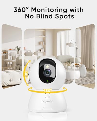 【Dual-Band Wi-Fi, Multi-Device Sharing】This Wi-Fi camera supports 5G and 2.4GHz dual-band, adapting to your network to reduce delays and ensure smooth video. The Boykeep app lets you connect up to 4 devices, easily monitoring different areas and sharing with family. Compatible with Alexa, it offers a smarter, more convenient monitoring experience—ideal for baby camera monitor needs.