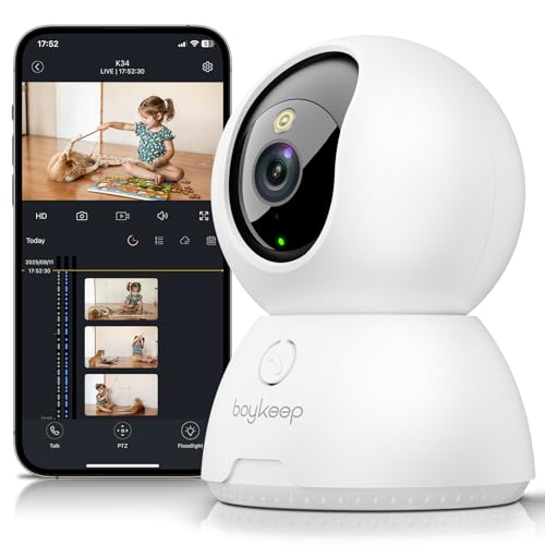 BoyKeep Indoor Camera, 2K Cameras for Home Security with Motion Detection, Pet Camera Indoor with Phone App, Color Night Vision, 2-Way Audio, Cloud/TF Card Storage, Compatible with Alexa