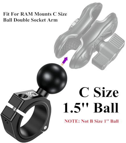 Specification: BRCOVAN 1.5” Ball Large Round Rail Bar Clamp Mount, Aluminum Alloy, Fit for ATV UTV Roll Cages 1.5” 1.65” 1.75” 1.85” 2” in Diameter, Fit for RAM Mounts C Size Ball Double Socket Arm