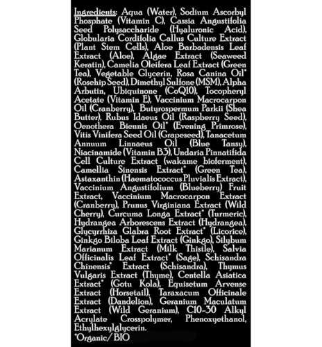 Key Ingredients: Natural & Organic ingredients, including Plant Stem Cells, Vitamin C, MSM, hyaluronic acid and green tea.