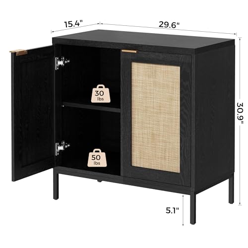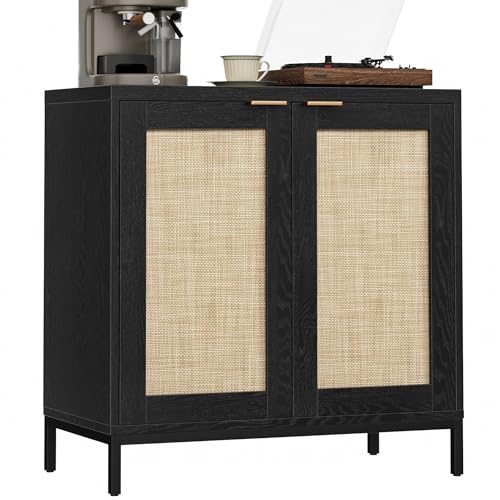 Specification: Buffet Cabinet with Rattan Decorated Doors, Buffet Table with Storage, Sideboard with Adjustable Shelves, Coffee Bar Cabinet Cupboard for Living Room, Kitchen, Entryway, Black
