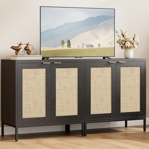 Be the first to review “Buffet Cabinet with Rattan Decorated Doors, Buffet Table with Storage, Sideboard with Adjustable Shelves, Coffee Bar Cabinet Cupboard for Living Room, Kitchen, Entryway, Black”