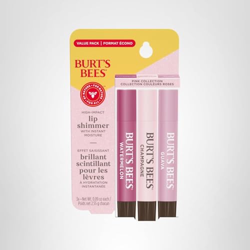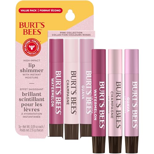 Specification: Burt’s Bees Christmas Gifts, Lip Shimmer Pink Collection, Tinted Lip Balm Stick, Moisturizing for Hydration with Natural Glowy Pigmented Finish & Buildable Color, Value Pack, 3 Tubes x 0.09 Oz