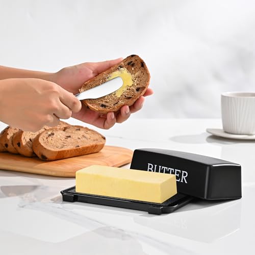 Specification: Butter Dish With Cover And Knife,Food Grade Plastic Butter Holder With Lid For Countertop,Black Dishwasher Safe Butter Storage Container