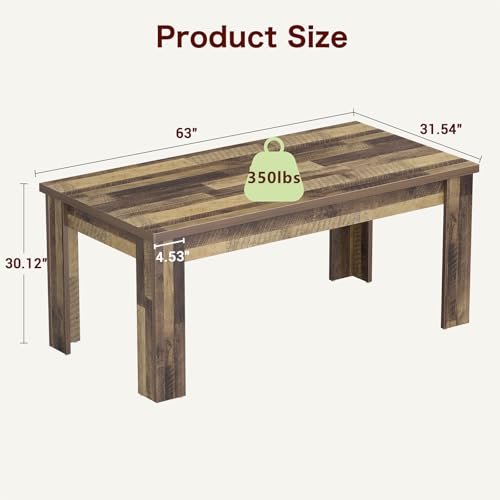 Specification: CABIHOME 63″ Dining Table for 4-6, Large Farmhouse Rectangular Kitchen Dining Room Table, Wooden, Thick Frame & Sturdy Triangular Legs, Strong Wood Base for Small Space, Dinner, Kitchen, Rustic Brown