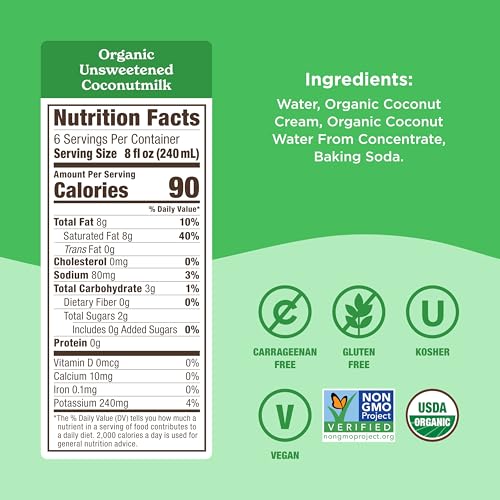 Specification: Califia Farms – Organic Unsweetened Coconut Milk, 48 Oz, Dairy Free, Vegan, Plant Based, Non GMO, Low Calorie, USDA Organic