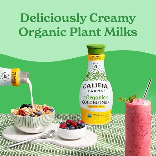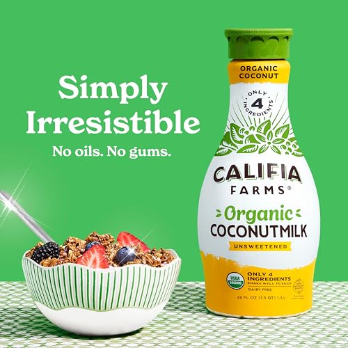 Califia Farms – Organic Unsweetened Coconut Milk, 48 Oz, Dairy Free, Vegan, Plant Based, Non GMO, Low Calorie, USDA Organic