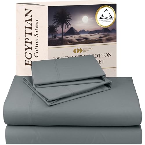 California Design Den 100% Egyptian Cotton Sheets King Size Bed Set – Certified Authentic Luxury, Soft and Durable Sateen, Deep Pocket King Size Egyptian Cotton Sheets Set – Grey
