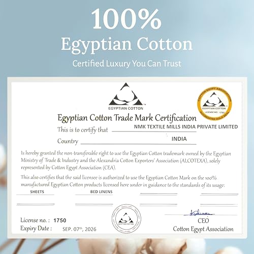 Lightweight Silky Soft Egyptian Cotton Sateen: DNA-tested and then certified with the Gold seal from the Egyptian Cotton Association, these king size sheets set Egyptian cotton bedding received the Good Housekeeping award in 2024. This cotton is grown in Egypt and known for its extra-long staple fibers that provide softness, strength, and a natural sheen.