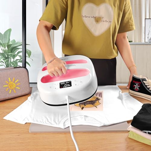 Specification: Calogy Heat Press Machine for T-Shirts 10″X10″, Portable Heat Press Fast Up to 410℉(210 ºC), Precise Temp Control, 15 Mins Auto Off for Bag, Pillows, Sublimation Vinly Transfer(White Pink, 10 x 10 In)