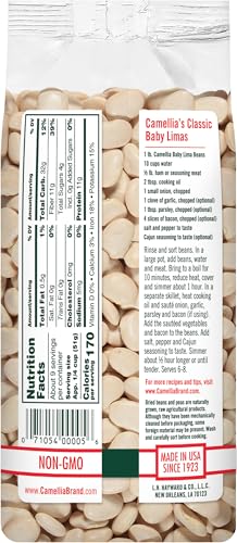 Specification: Camellia Brand Dried Baby Lima Beans – Premium Small White Butter Beans for Southern Cooking, Succotash, Soups, Stews, and Healthy Vegetarian Meals – Non-GMO, Gluten-Free, High Protein 1 Pound (Pack of 6)
