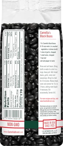 Specification: Camellia Brand Dried Black Beans, Frejoles Negros – Premium Non-GMO Black Turtle Beans for Soups, Chili, Tacos, Burritos, Rice & Peas, Latin & Southwestern Cooking – Gluten-Free, High Protein, Vegan & Vegetarian Friendly, 1 Pound (Pack of 2)