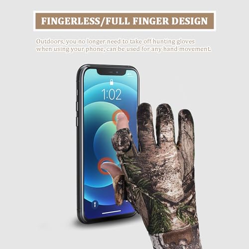Camouflage Hunting Gloves, Lightweight Anti-Slip Full Finger Fingerless Touchscreen Camo Gloves Outdoor Tactical Hunting Gear Archery Accessories for Turkey Fishing Airsoft