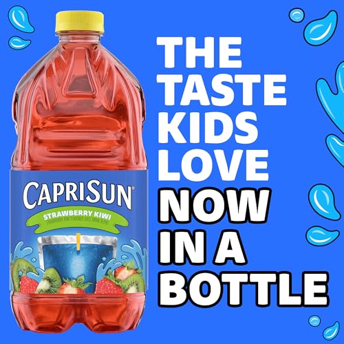 Introducing Capri Sun Strawberry Kiwi Flavored Juice Drink Blend in a convenient multi-serve bottle. Capri Sun brings the taste kids love, now in a large 64-ounce bottle the whole family can enjoy. Each bottle is equal to more than 10 pouches, so you can stock up for at-home convenience. At Capri Sun, we believe in keeping it real — that’s why our juice is made with fruit juice. Made with no artificial dyes, flavors, sweeteners or preservatives, it’s an excellent choice for your family. Perfect for gatherings, parties or family meals, Capri Sun adds a splash of fun to any occasion. Shake well before pouring and refrigerate after opening. Loved by kids and now available for the whole family to enjoy — it’s gonna be epic!