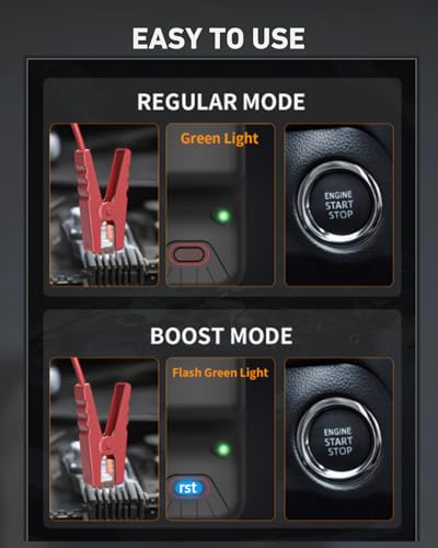 【Comprehensive Safety】Our battery jumper starter portable for car has 10 intelligent safety protections against overcharge, short circuits, Spark-proof, reverse polarity, overload, power surging and sparking, and so forth. The car battery jumper starter portable cable indicator light real-time notifies incorrect operations, protect you and your vehicle.