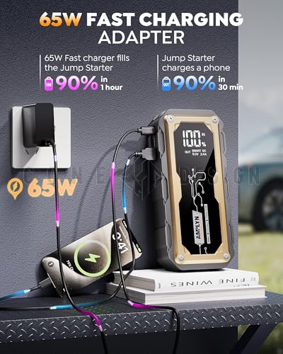 Specification: Car Jump Starter with 65W Quick Charger 24000mAh Battery Pack,12V Car Battery Jumper Starter Portable,LED Display,All Gas 12L Diesel Engine Booster,Jump Box with LED Light,Jump Cable